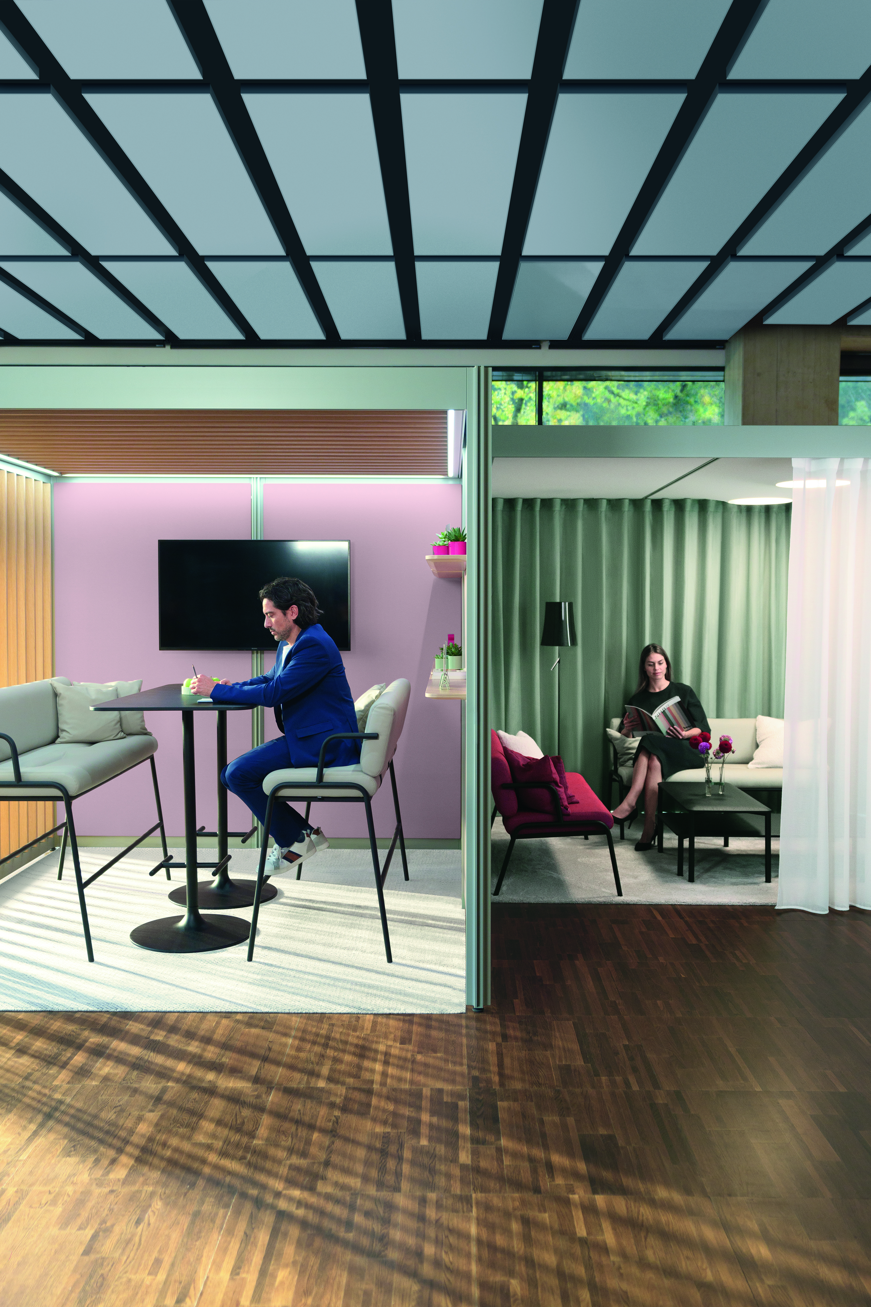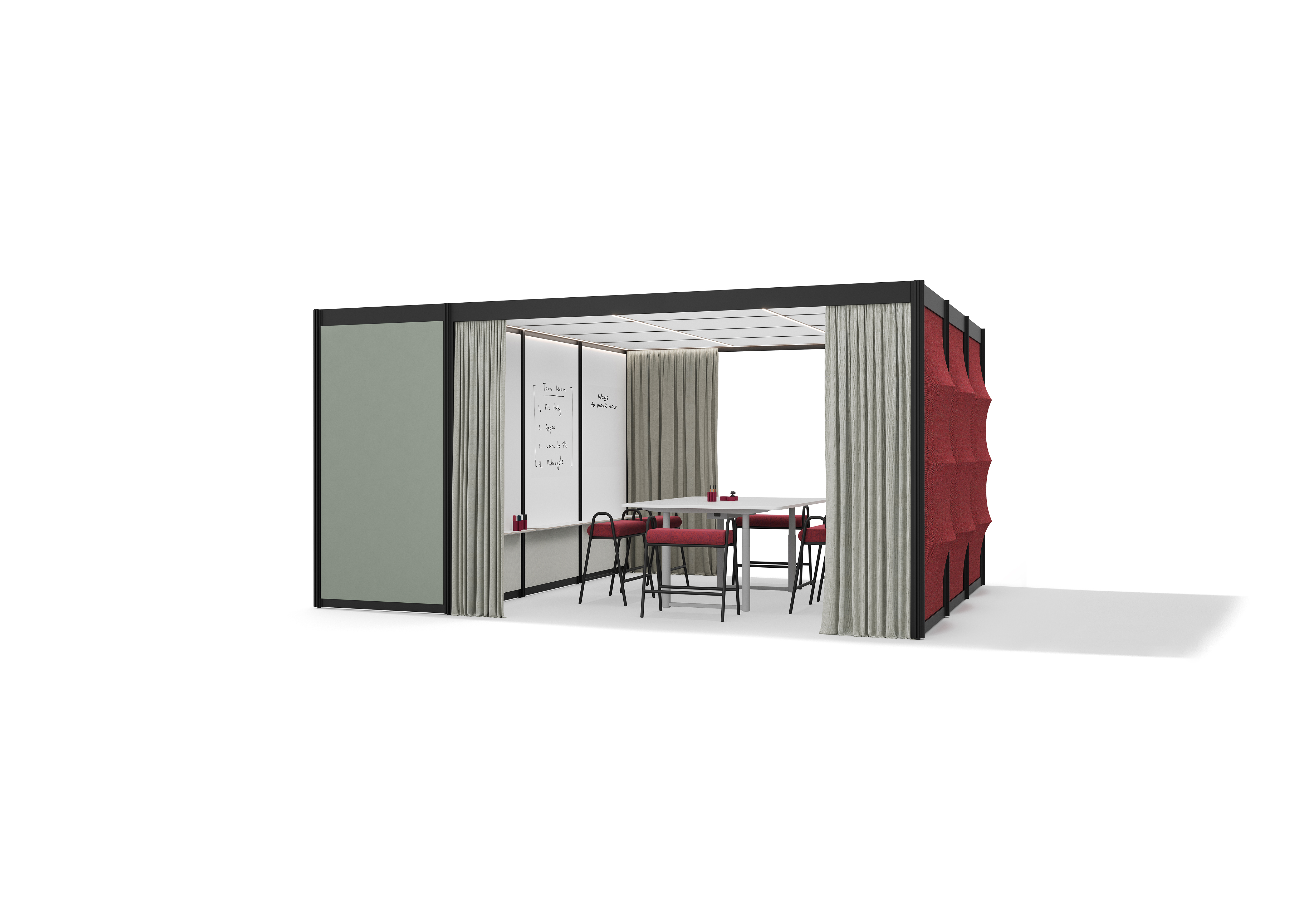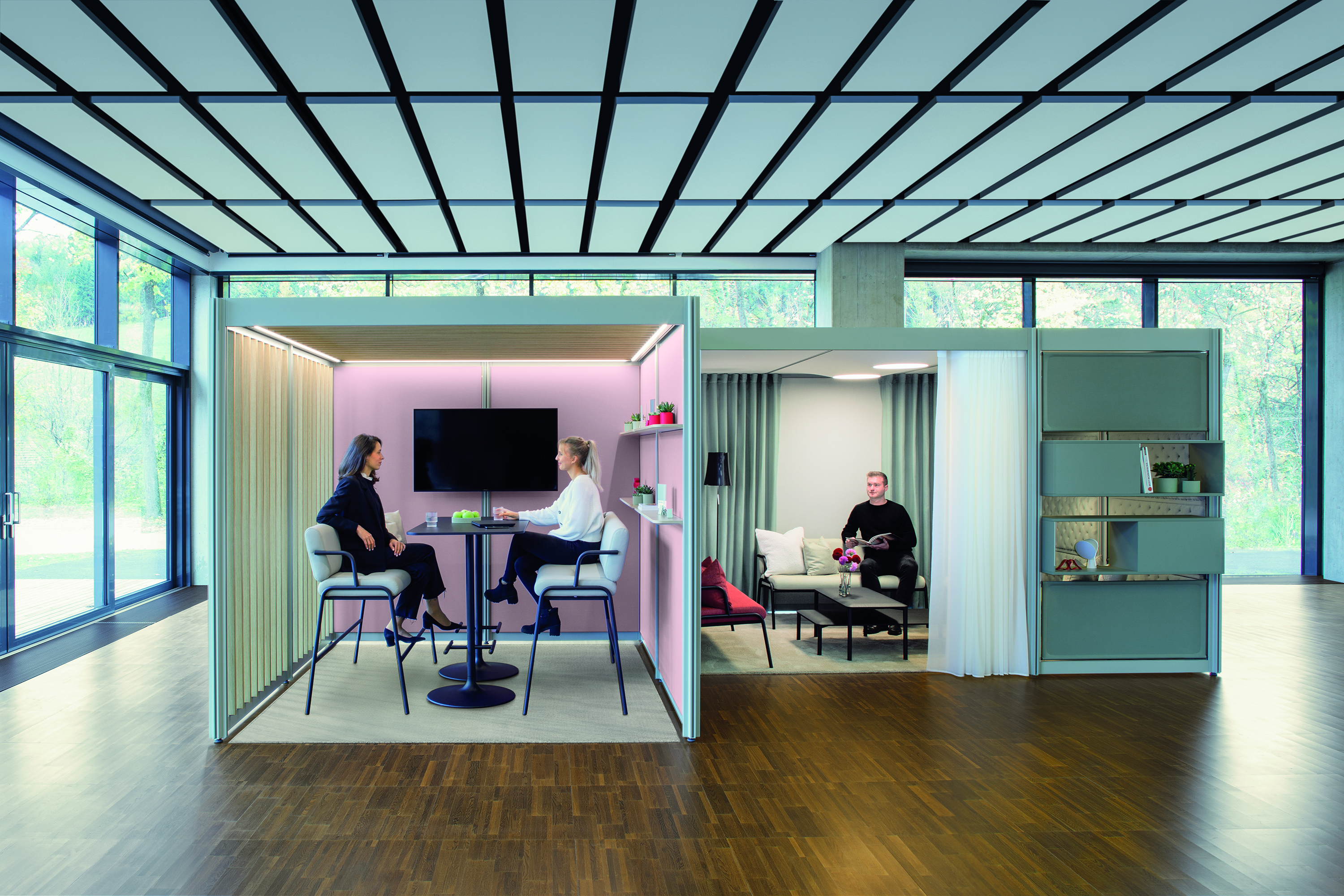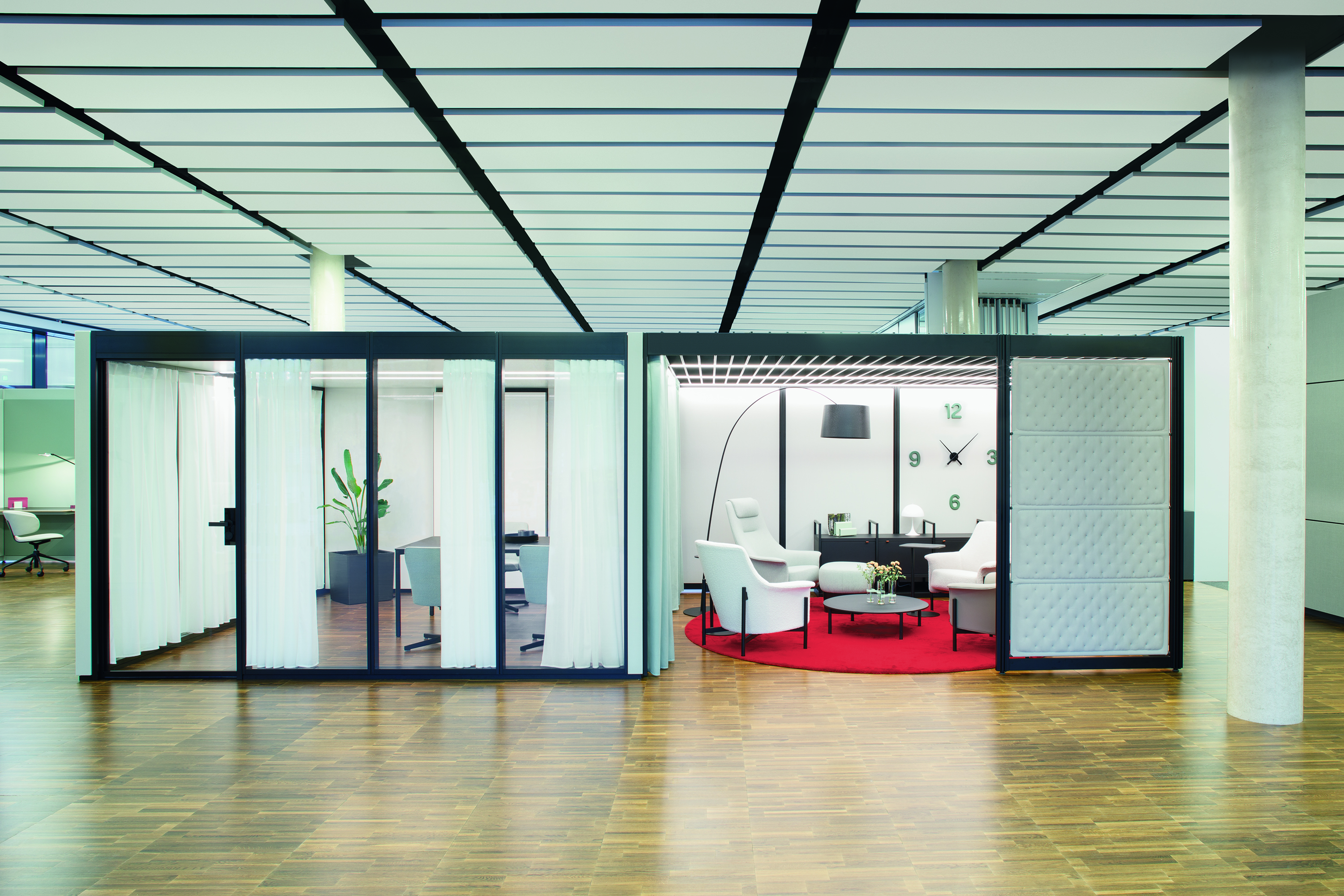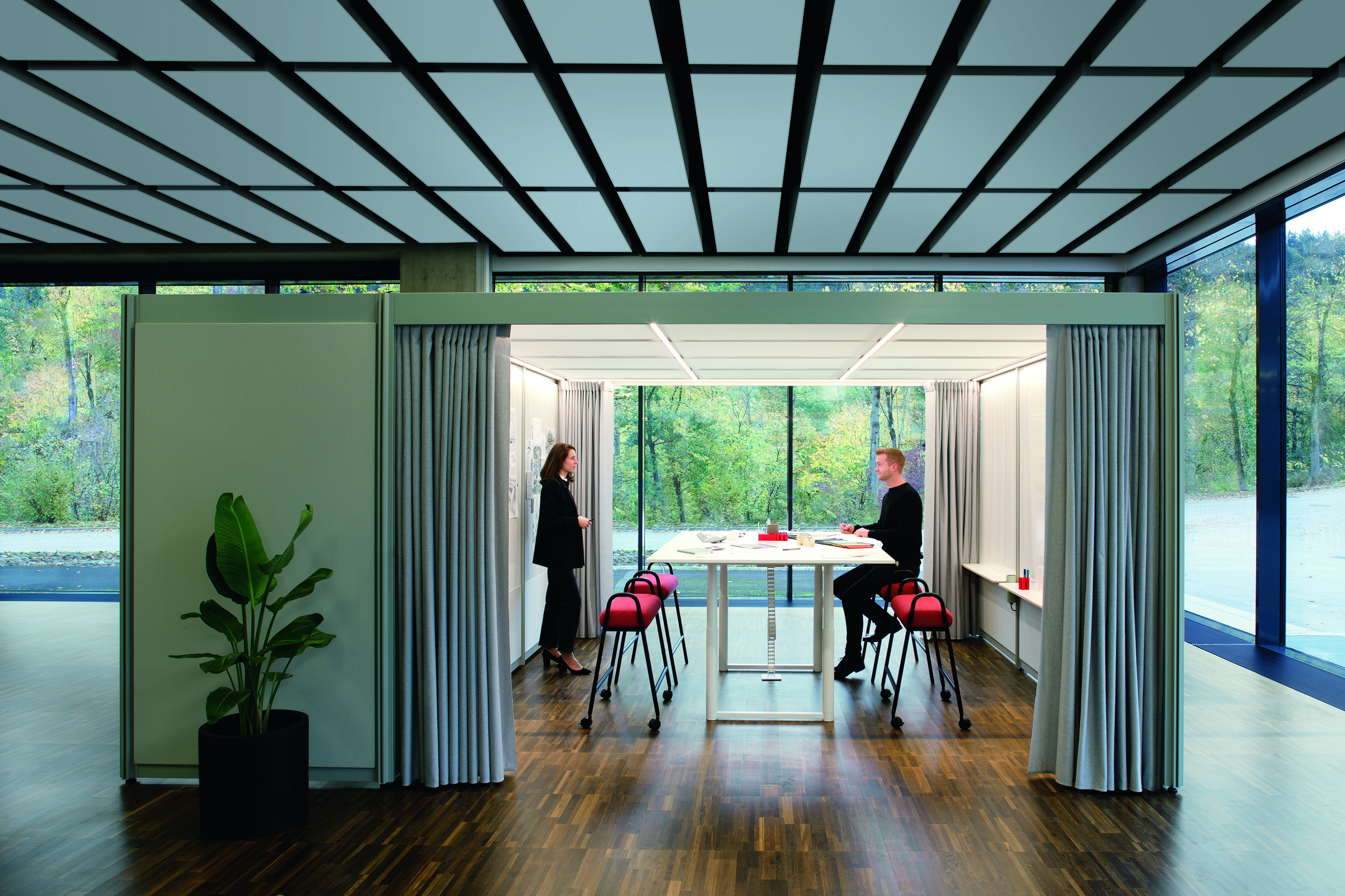 Eine inspirierende Umgebung, die jedem Bedürfnis Raum bietet, egal ob es sich um Austausch, Begegnung oder Konzentration handelt: Mit POINTS lassen sich genau die Zonen kreieren, die gerade benötigt werden. Das modulare Baukastensystem designed von Pearson Lloyd ist freistehend, erfordert keinen Eingriff in die Gebäudestruktur und bietet maximale Flexibilität.So werden Räume geschaffen, die sowohl den benötigten Platz als auch den Komfort für die gewünschten Aktivitäten bieten. Beispiele hierfür sind entspannte Loungebereiche, die eine einladende Atmosphäre schaffen und den informellen Austausch unter Mitarbeitenden fördern, aber auch funktionale Workshopräume für aktive Teamarbeit und gemeinsame Projektarbeit.