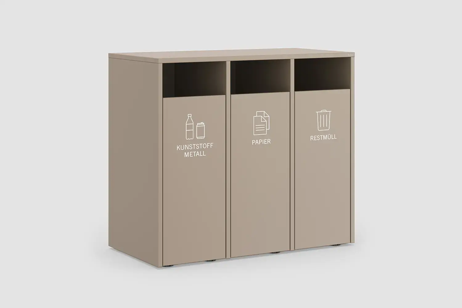 Ästhetische Mülltrennsysteme sind essenziell in modernen Büros. Die Recycling Station ermöglicht saubere Mülltrennung, fördert Nachhaltigkeit und spart Ressourcen, indem sie eine Vielzahl an Mülleimern ersetzt. Gut platziert, fördert sie Kommunikation und Bewegung am Arbeitsplatz.
