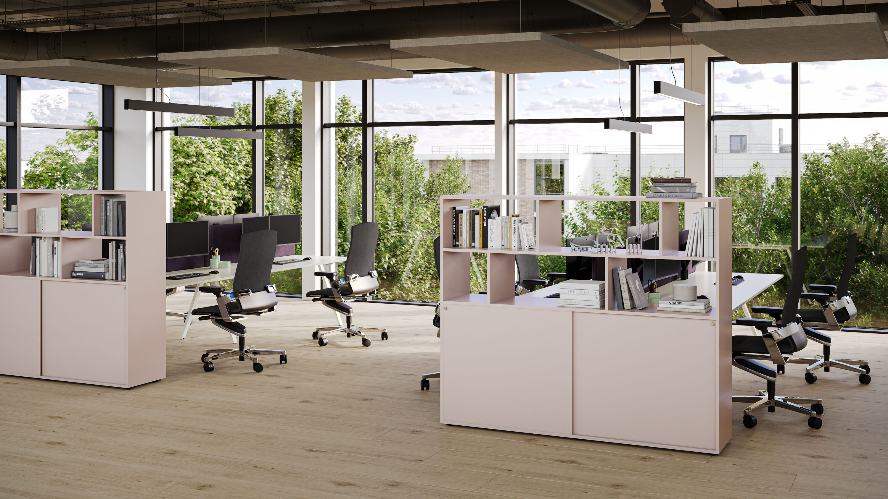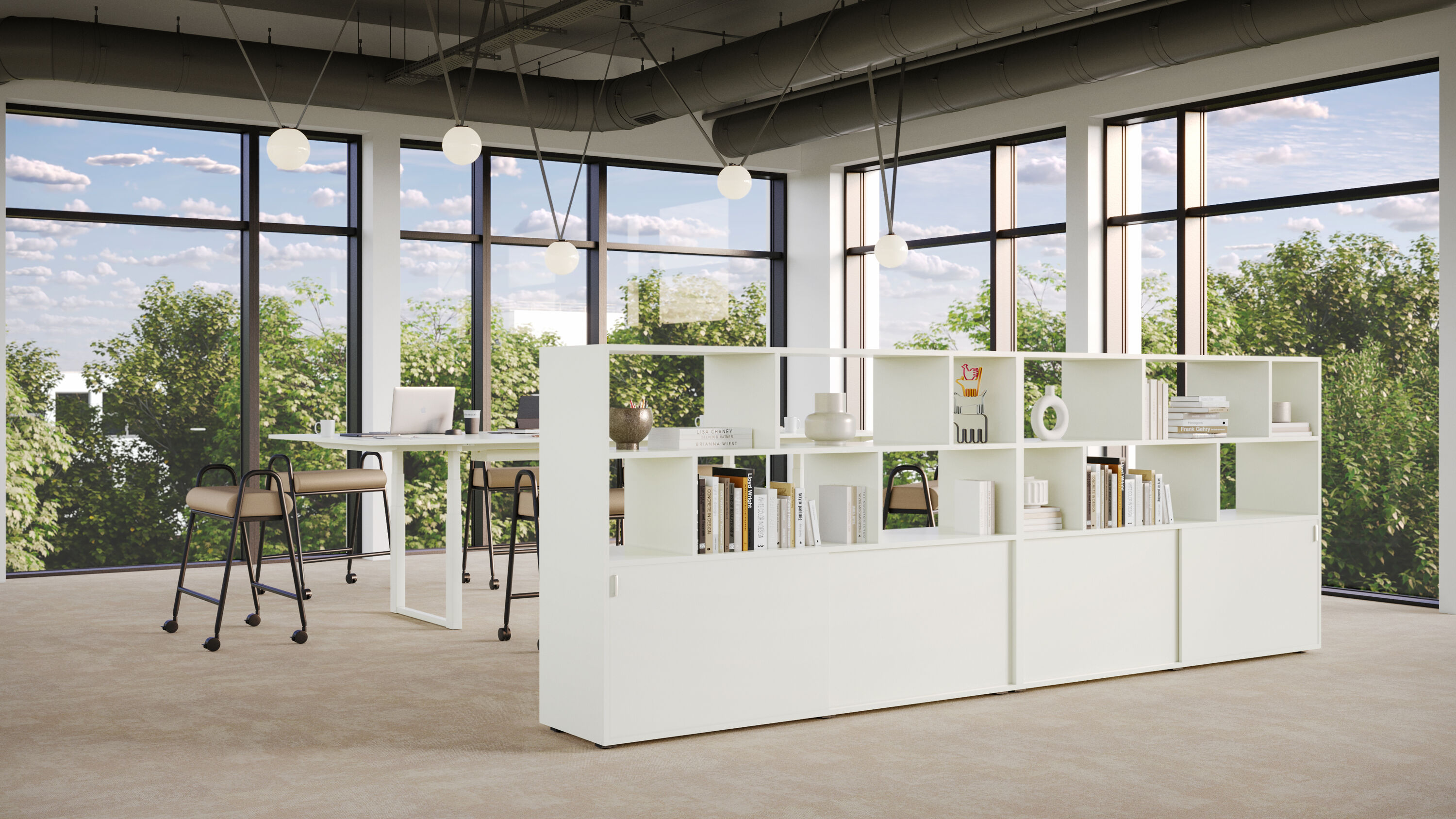 LOFT Storage de Christian Horner en est un bon exemple : ce module de bureau associe un espace de rangement fonctionnel à des niveaux d'aménagement ouverts. Les compartiments disposés de manière asymétrique se présentent comme des espaces d'exposition et de présentation individuels, tandis que l'armoire de rangement classique se trouve juste en dessous. Des portes coulissantes pratiques permettent un accès simple et peu encombrant à l'intérieur. En particulier dans les grands bureaux, LOFT Storage est également idéal pour diviser l'espace : il peut être utilisé comme un séparateur de pièce indépendant accessible des deux côtés, ce qui permet de maintenir la ligne de vue grâce à l'interaction entre les éléments ouverts et fermés. "L'espace de stockage devient plus décoratif, plus ouvert et plus individuel dans son utilisation. Ils changent, mais restent un élément important de l'aménagement des bureaux", explique Christian Horner.