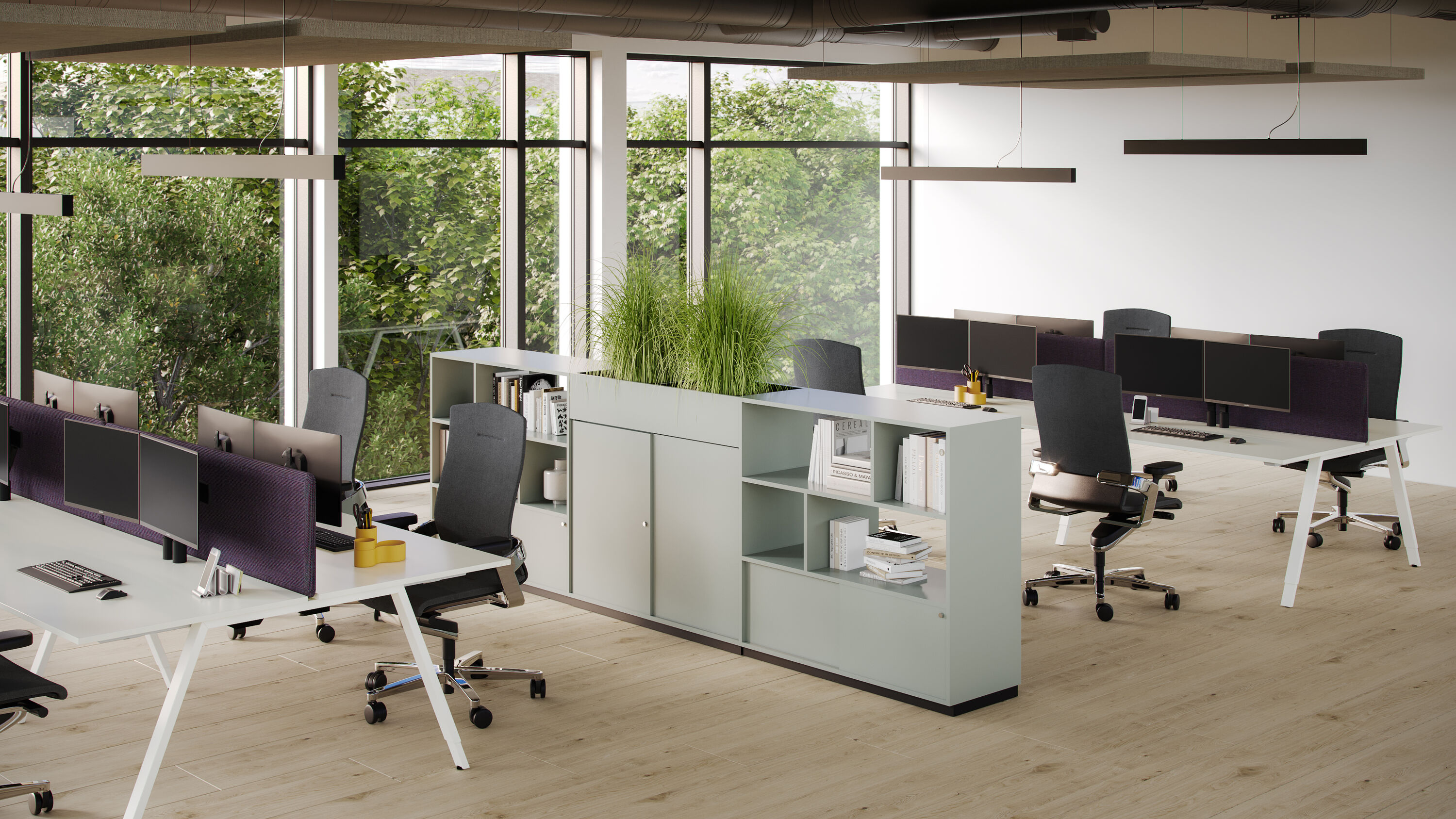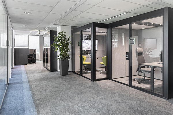 Dans les concepts de bureaux ouverts, une division intelligente des pièces et une bonne acoustique sont des facteurs clés pour créer un environnement de travail productif. Cela nécessite parfois la construction de cloisons spatiales claires. Cependant, les installations murales fixes sont coûteuses, peu flexibles et en contradiction avec les qualités de l'espace ouvert. Le système de cloisons modulaires NOOXS, conçu par Pearson Lloyd, est recommandé comme alternative : Il offre la possibilité de créer les zones requises dans l'espace de bureau. Les éléments muraux solides peuvent être combinés de manière créative pour former des niches indépendantes. De cette manière, ils définissent différents environnements de travail et offrent une gamme différenciée d'espaces : pour les réunions, les discussions sur les projets, les kitchenettes et bien plus encore.