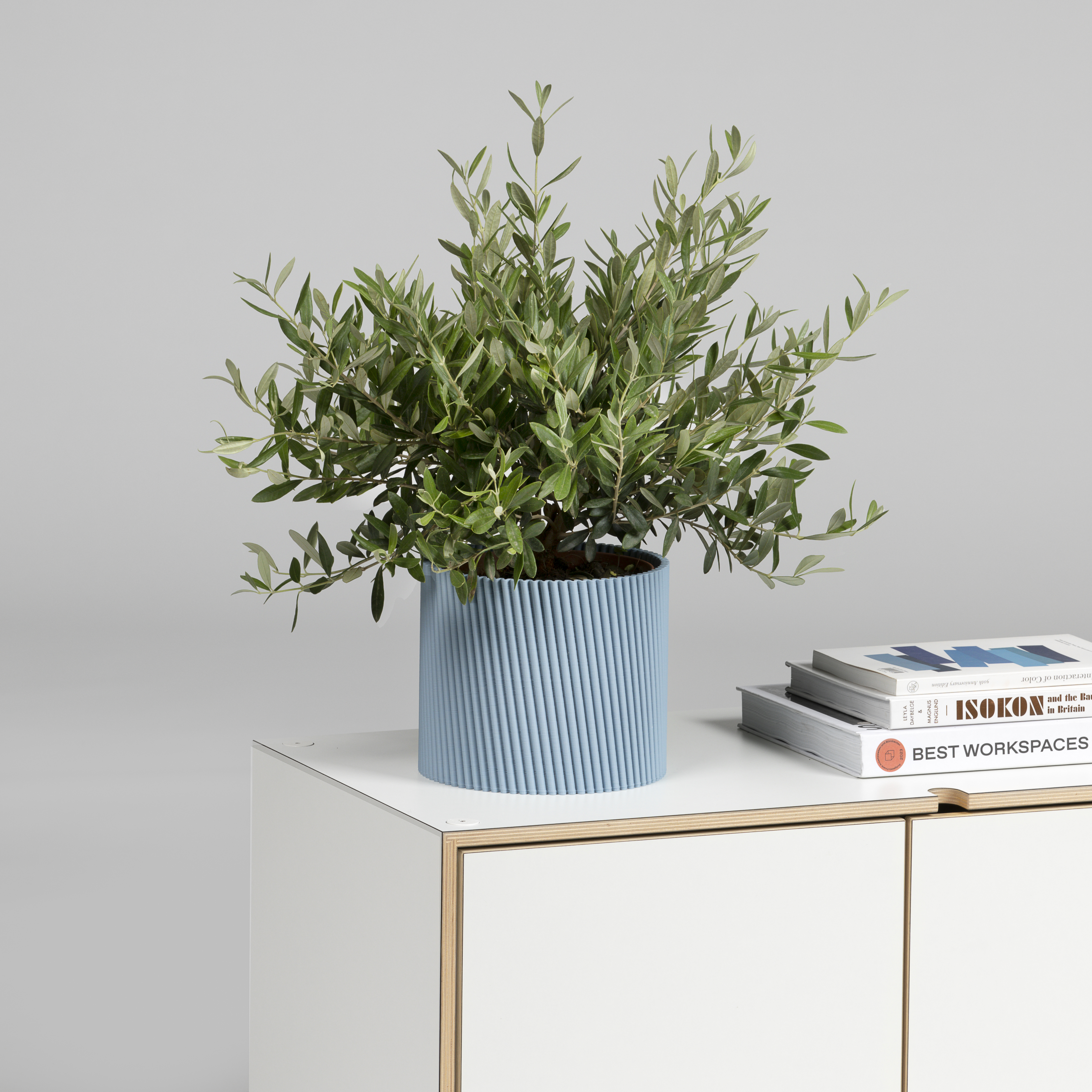 Doniczka do roślin o nietypowej powierzchni, uzupełnia istniejącą kolekcję Tilted z tacą i misą.