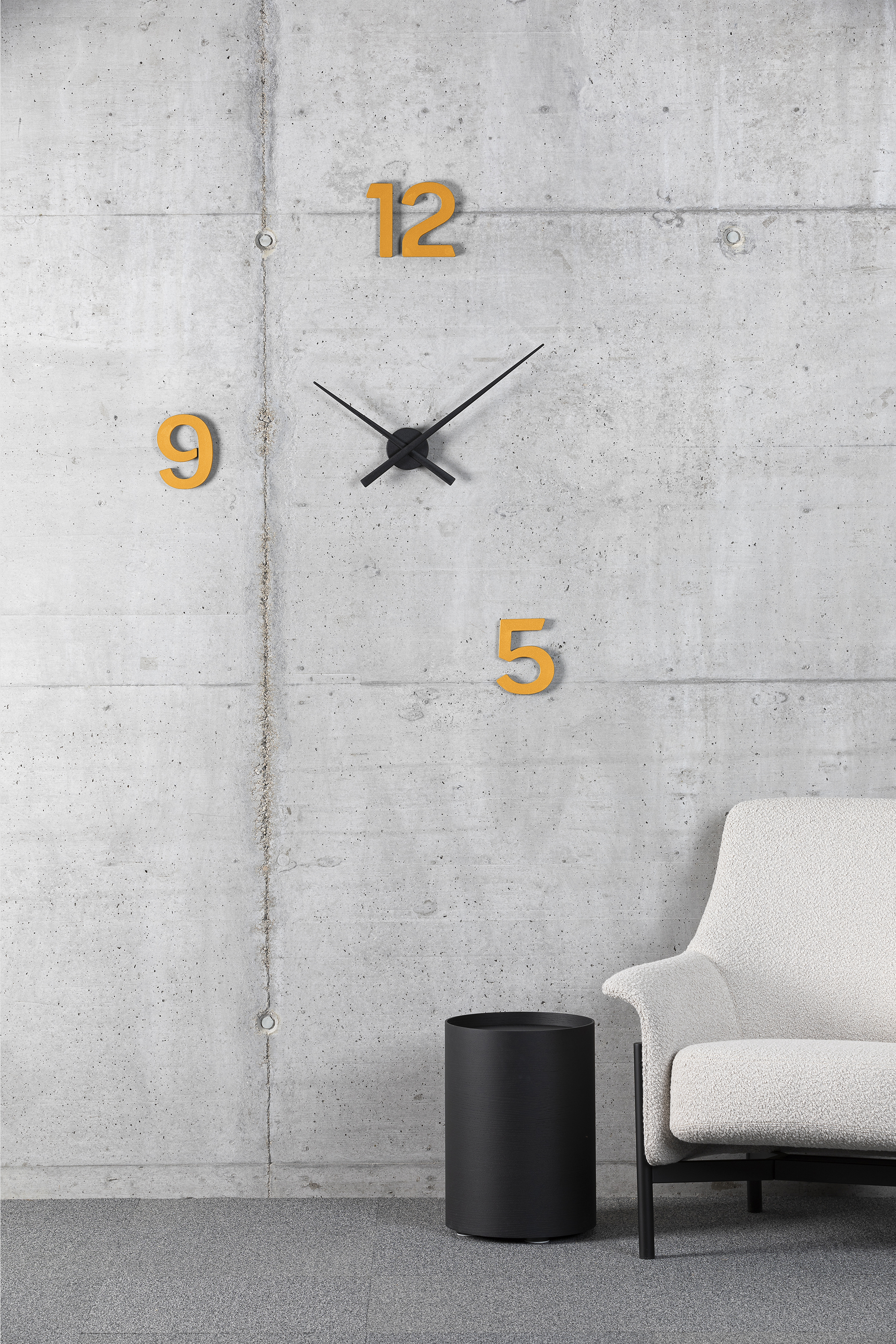 Zegar ścienny z wieloma możliwościami. Dostępne są różne wersje w zależności od układu cyfr: Wariant 1 (cyfry 3, 6, 9, 12) to klasyczna wersja zegara. Wariant 2 (cyfry 5, 9, 12) reprezentuje godziny konwencjonalnego dnia roboczego. Lub wariant 3 (1, 2, 3) jako minimalistyczna alternatywa. Wskazówki zegara są dostępne w kolorze czarnym i białym, a cyfry wydrukowane w 3D w standardowych kolorach bFRIENDS.